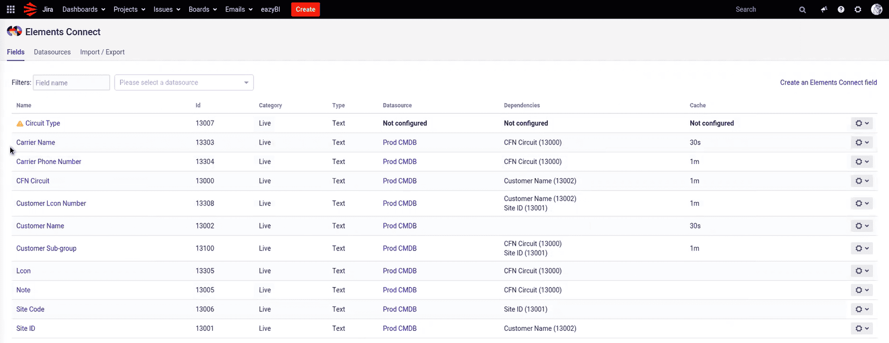 The final piece was added by centralizing data on customers’ assets inside this portal. As Apcela already stored this data in a CMDB (as a SQL database), Elite used the app Elements Connect to integrate the already existing data inside Jira.